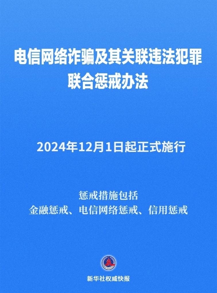 公安部11月26日召開新聞發(fā)布會,介紹公安部會同國家發(fā)展和改革委員會、工業(yè)和信息化部、中國人民銀行聯合印發(fā)《電信網絡詐騙及其關聯違法犯罪聯合懲戒辦法》,2024年12月1日起正式施行。