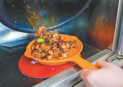 劉楊現(xiàn)場(chǎng)下單了一份干燒雙菇,炒好后,打開(kāi)柜門(mén)的那一刻,香氣撲面而來(lái)?!翱隙ū任易约鹤龅暮贸?,比一些餐廳的味道也好?!眲钫f(shuō):“如果家中來(lái)客,炒3個(gè)菜帶回家,總共也就幾十元,比下館子劃算得多?!?/p>