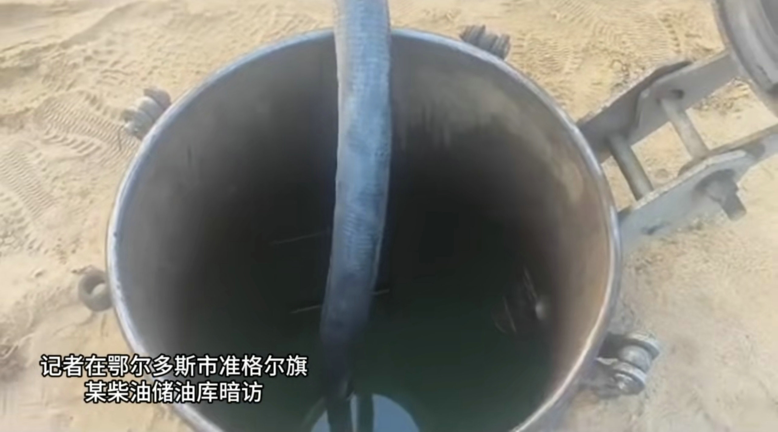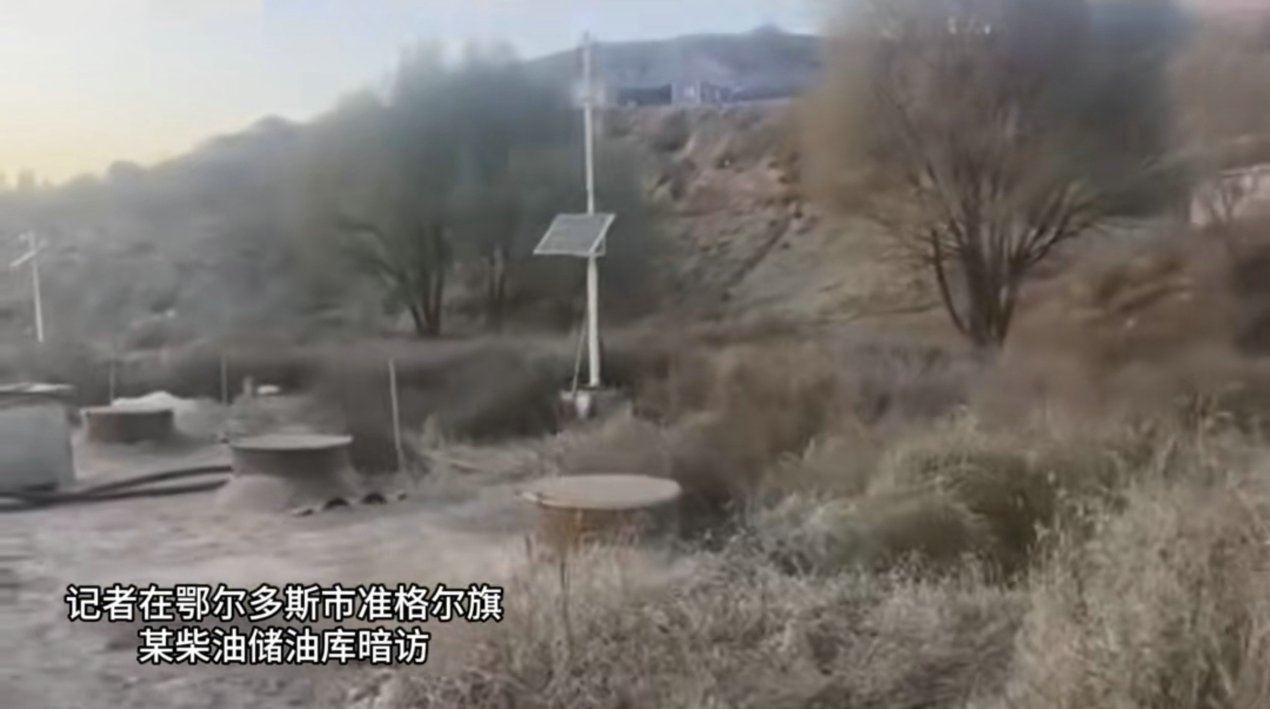 10月28日,內(nèi)蒙古日?qǐng)?bào)社張弓長(zhǎng)新聞工作室記者在鄂爾多斯市準(zhǔn)格爾旗一個(gè)緊鄰礦區(qū)的山溝里暗訪時(shí)發(fā)現(xiàn),有一處規(guī)模較大的地埋罐式柴油儲(chǔ)油庫(kù),存在重大安全隱患。