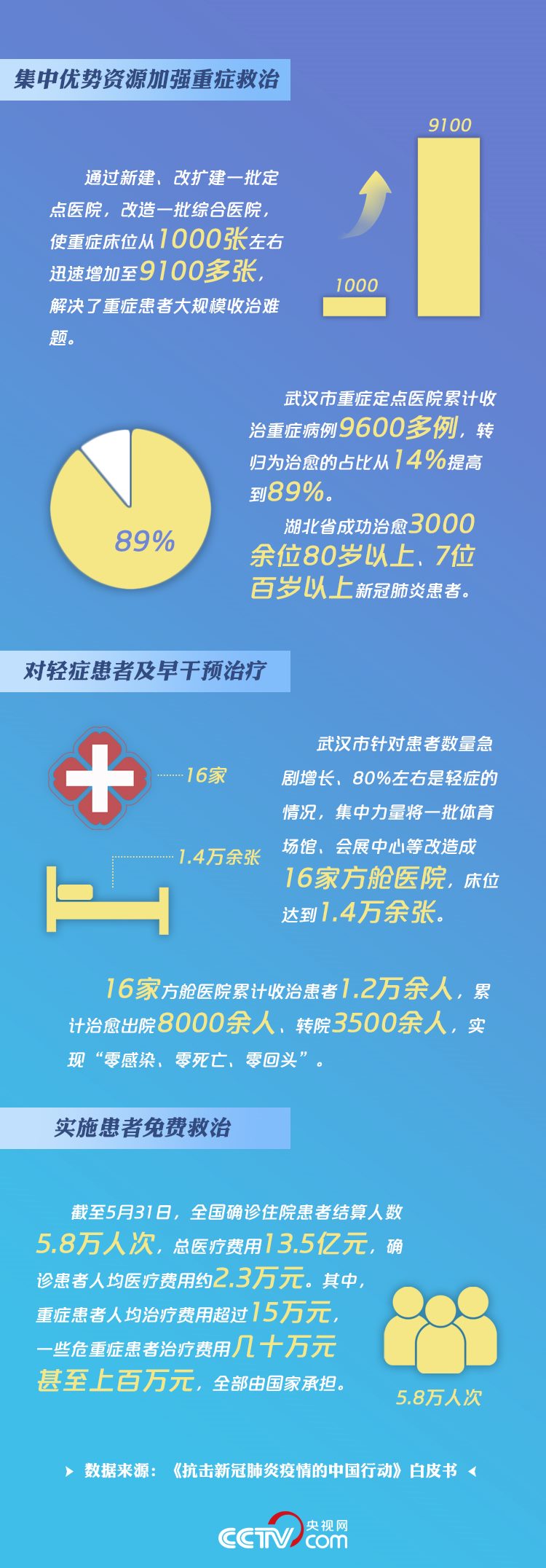 “人的生命只有一次,必須把它保住?!薄盁o論年齡再大、病情再重我們都絕不放棄。”“不惜代價,要讓患者用上最好的設備?!币粋€個戰(zhàn)“疫”成果的大數(shù)據(jù),無不彰顯了總書記憂民、愛民的赤子情懷。