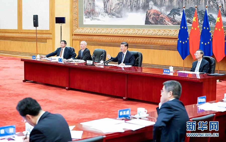 新華社北京9月14日電國家主席習(xí)近平14日晚在北京同歐盟輪值主席國德國總理默克爾、歐洲理事會主席米歇爾、歐盟委員會主席馮德萊恩共同舉行會晤,會晤以視頻方式舉行。中德歐領(lǐng)導(dǎo)人就中歐關(guān)系深入交換意見,為下階段中歐關(guān)系規(guī)劃方向,確定重點領(lǐng)域,一致同意加強(qiáng)溝通協(xié)調(diào)合作,確保今后中歐之間一系列重大政治議程取得成功,深化互信,實現(xiàn)互利共贏,堅持維護(hù)多邊主義,共同應(yīng)對全球性挑戰(zhàn),推動中歐關(guān)系邁向更高水平。中歐雙方宣布簽署《中歐地理標(biāo)志協(xié)定》,確認(rèn)加快中歐投資協(xié)定談判,實現(xiàn)年內(nèi)完成談判的目標(biāo)。中歐決定建立環(huán)境與氣候高層對話和數(shù)字領(lǐng)域高層對話,打造中歐綠色合作伙伴、數(shù)字合作伙伴關(guān)系。