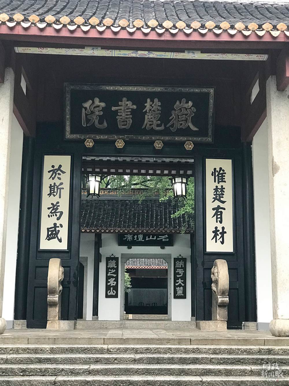 △岳麓書(shū)院是中華文化的重要地標(biāo),門(mén)前這幅對(duì)聯(lián)“惟楚有材于斯為盛”分別出自《左傳》和《論語(yǔ)·泰伯》。(總臺(tái)央視記者石偉明拍攝)