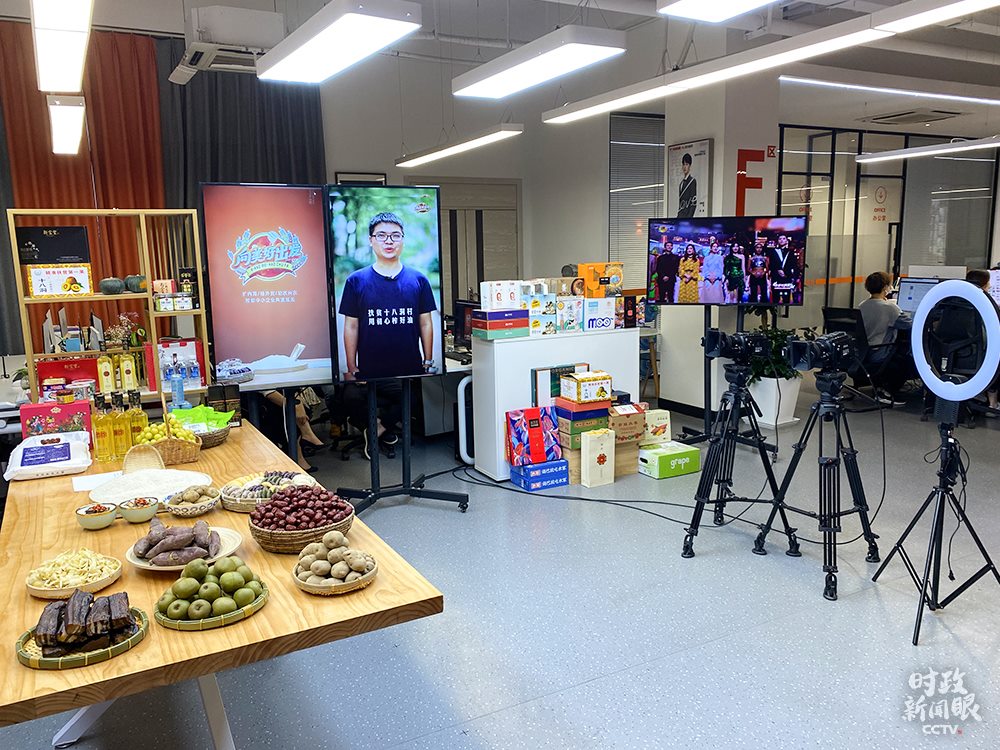 △園區(qū)正準(zhǔn)備做扶貧農(nóng)產(chǎn)品銷(xiāo)售直播。(總臺(tái)央視記者郭曉龍拍攝)