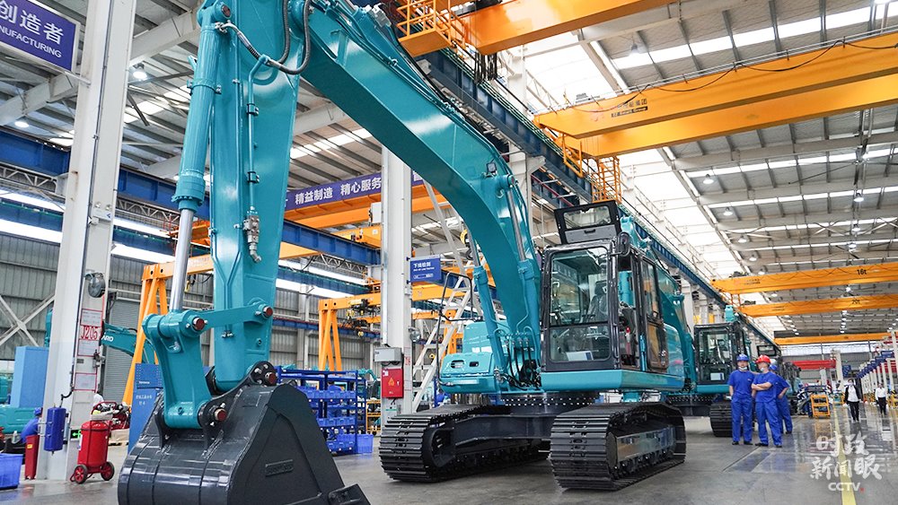 △山河智能生產(chǎn)車(chē)間組裝的大型挖掘機(jī),能適應(yīng)多種復(fù)雜地形作業(yè)。(總臺(tái)央視記者郭曉龍拍攝)