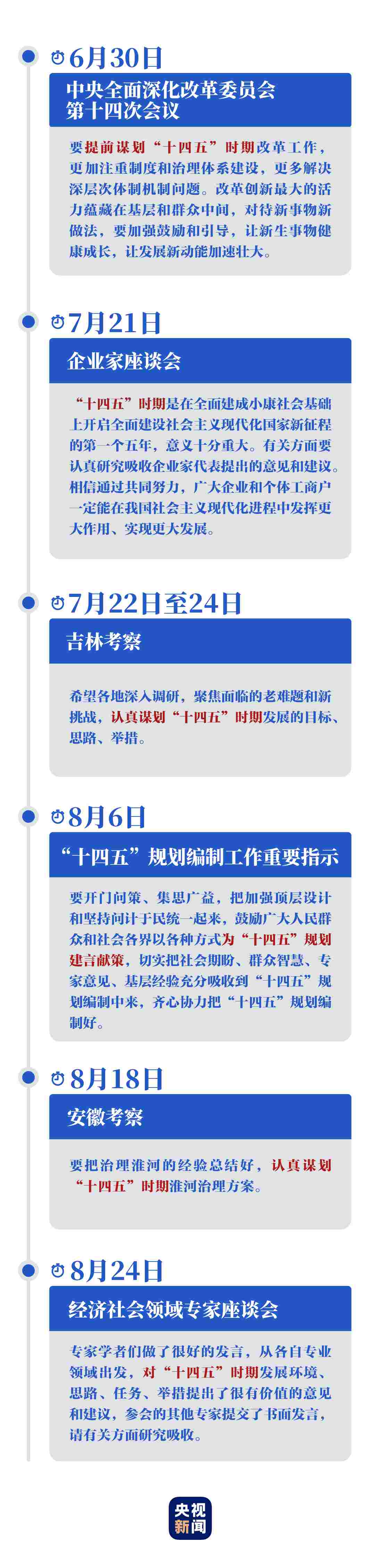 今年以來(lái),習(xí)近平總書(shū)記多次主持召開(kāi)重要會(huì)議、赴地方考察,就“十四五”開(kāi)門問(wèn)策,聽(tīng)取大家對(duì)當(dāng)前經(jīng)濟(jì)形勢(shì)、“十四五”規(guī)劃的意見(jiàn)和建議,強(qiáng)調(diào)要集思廣益、齊心協(xié)力把“十四五”規(guī)劃編制好。