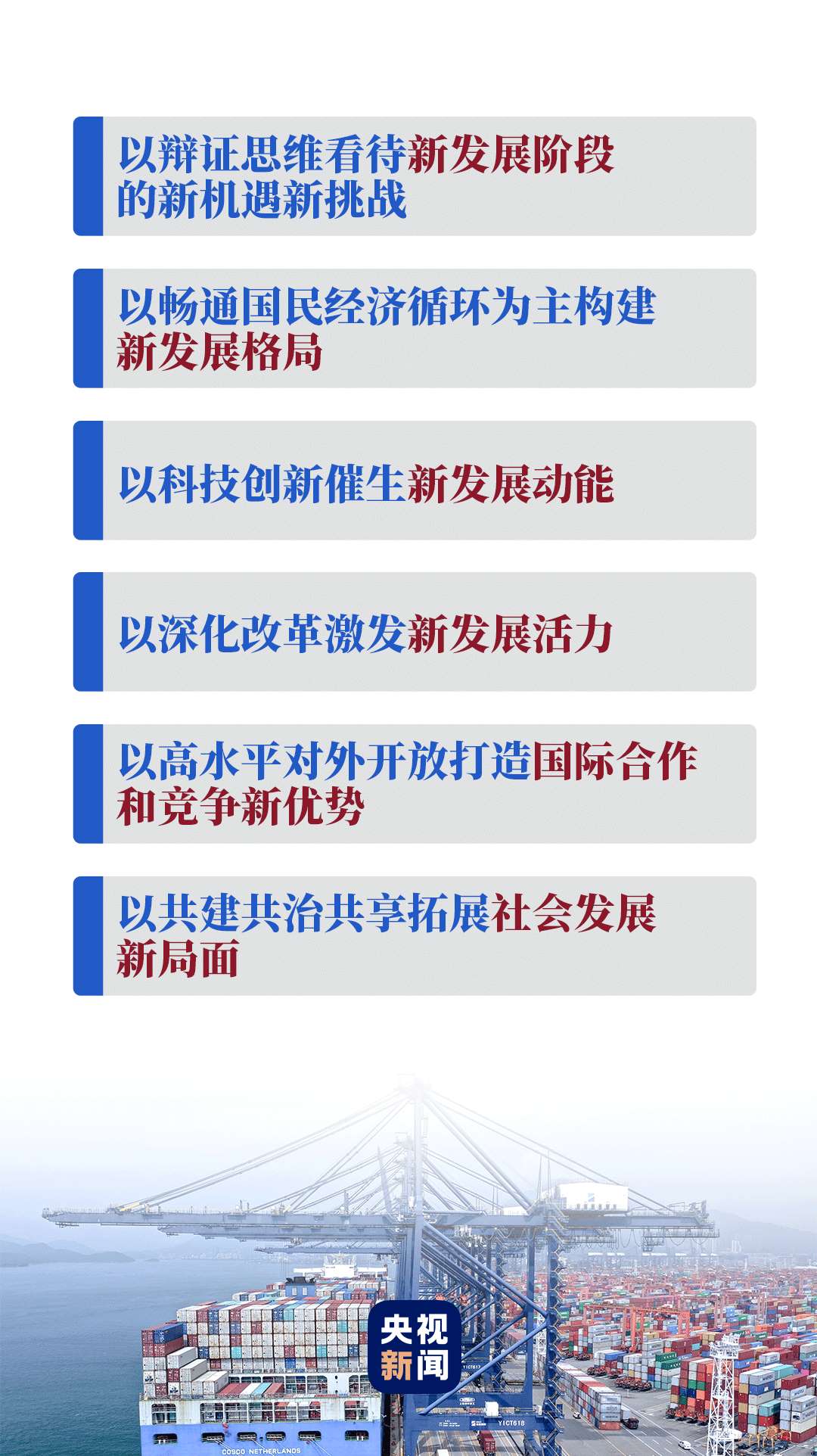 在經(jīng)濟(jì)社會(huì)領(lǐng)域?qū)<易剷?huì)上,習(xí)近平從黨和國(guó)家事業(yè)發(fā)展的戰(zhàn)略全局出發(fā),從新發(fā)展階段、新發(fā)展格局、新發(fā)展動(dòng)能、新發(fā)展活力、國(guó)際合作和競(jìng)爭(zhēng)新優(yōu)勢(shì)、社會(huì)發(fā)展新局面等方面提出要求。這六點(diǎn)要求為正確認(rèn)識(shí)和把握中長(zhǎng)期經(jīng)濟(jì)社會(huì)發(fā)展重大問(wèn)題指明了方向,是“十四五”規(guī)劃編制和未來(lái)經(jīng)濟(jì)社會(huì)發(fā)展的重要遵循。
