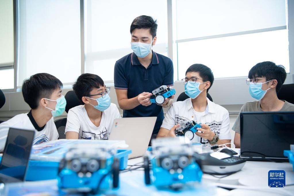 2020年7月14日,創(chuàng)業(yè)者吳以航在澳門青年創(chuàng)業(yè)孵化中心為學生上培訓課?!?0后”吳以航是澳門青年創(chuàng)業(yè)孵化中心會員,2019年,他進駐廣州市天河區(qū)港澳青年之家,成立藍點教育技術(廣州)有限公司。新華社記者張金加攝