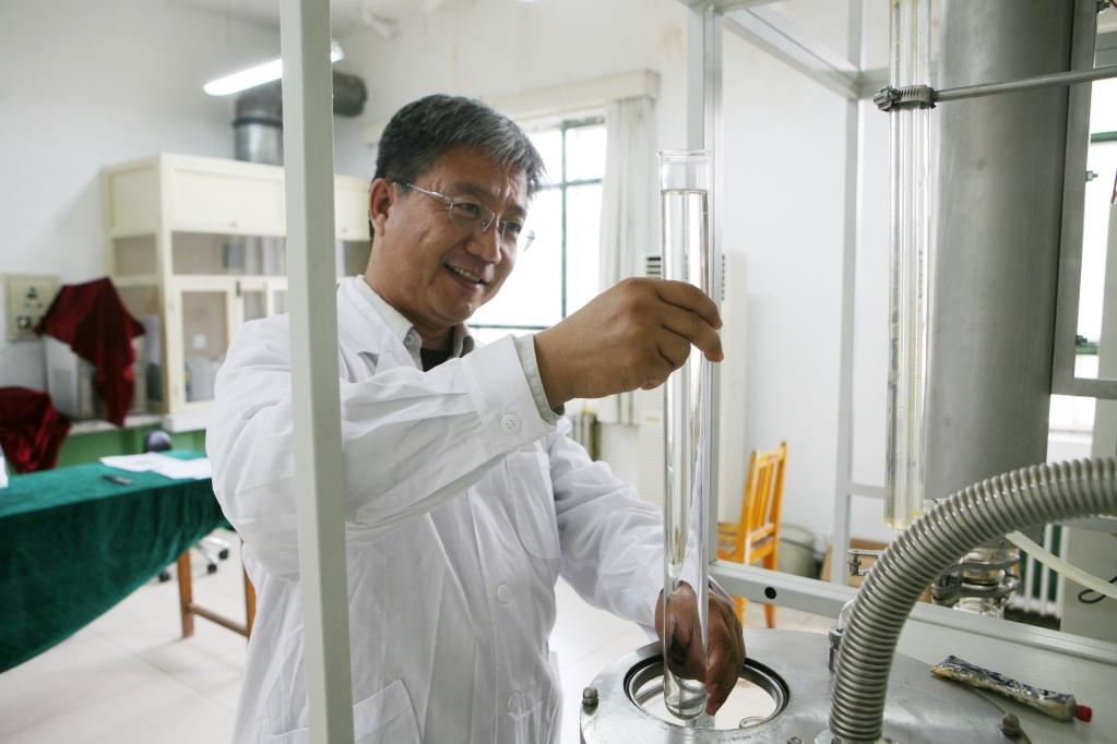 正在實(shí)驗(yàn)室做油品實(shí)驗(yàn)的柯友勝(資料圖片)。