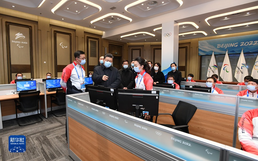 1月4日,中共中央總書記、國家主席、中央軍委主席習近平在北京考察2022年冬奧會、冬殘奧會籌辦備賽工作。這是4日下午,習近平在北京冬奧運行指揮部調度中心考察。新華社記者 謝環(huán)馳 攝