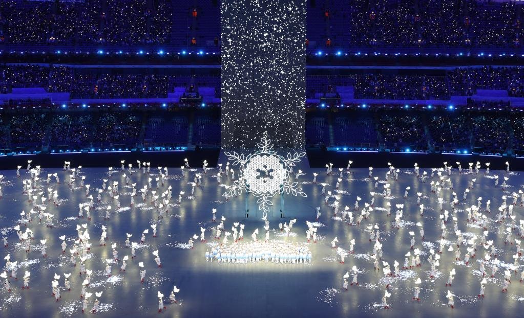 2月4日晚,第二十四屆冬季奧林匹克運(yùn)動(dòng)會(huì)開(kāi)幕式上的“雪花”環(huán)節(jié)。新華社記者楊磊攝