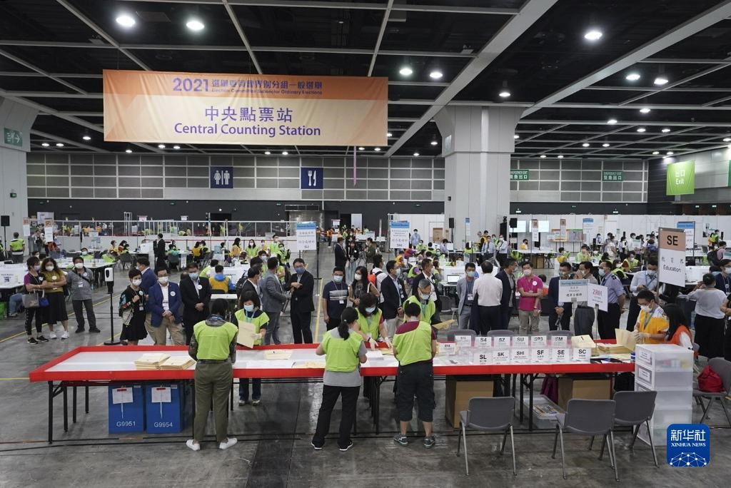 2021年香港特別行政區(qū)選舉委員會界別分組一般選舉舉行。這是工作人員開始點票(2021年9月19日攝)。新華社記者呂小煒攝