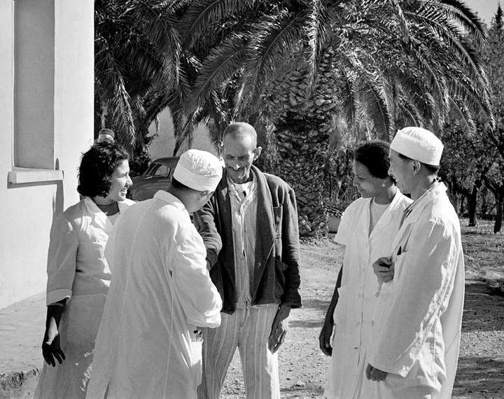 1966年12月14日,中國醫(yī)療隊(duì)與一名阿爾及利亞患者交談。新華社發(fā)