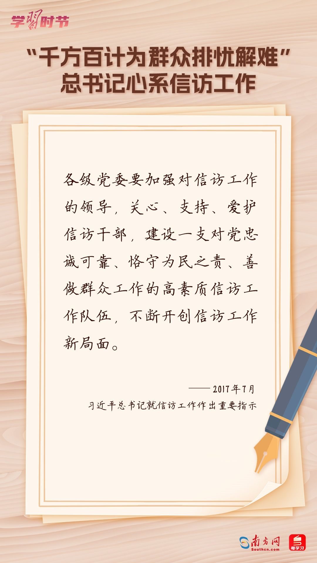2022年5月1日,中共中央、國務院印發(fā)的《信訪工作條例》正式實施?!缎旁L工作條例》以習近平新時代中國特色社會主義思想為指導,深入貫徹習近平總書記關于加強和改進人民信訪工作的重要思想,總結黨長期以來領導和開展信訪工作經(jīng)驗特別是黨的十八大以來信訪工作制度改革成果,堅持和加強黨對信訪工作的全面領導,理順信訪工作體制機制,是新時代信訪工作的基本遵循。今年5月1日是《信訪工作條例》實施一周年,“學習時節(jié)”整理摘錄習近平總書記關于信訪工作的重要講話和重要指示批示,與您一同學習。
