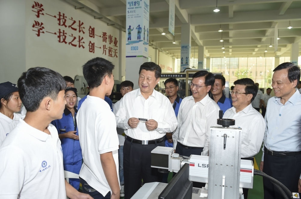 2015年6月17日,習(xí)近平在貴州省機(jī)械工業(yè)學(xué)校實訓(xùn)基地勉勵學(xué)生加強(qiáng)操作訓(xùn)練、不斷取得優(yōu)異成績。