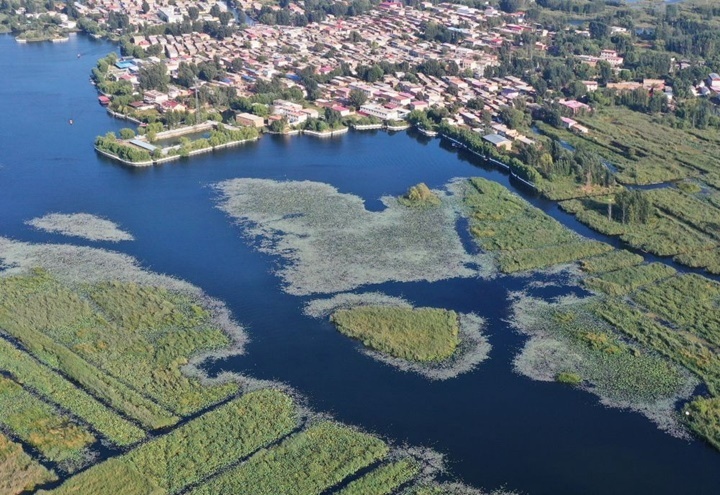 這是河北雄安新區(qū)白洋淀劃定的一處鳥類棲息地(2022年9月21日攝,無人機(jī)照片)。新華社記者 朱旭東 攝