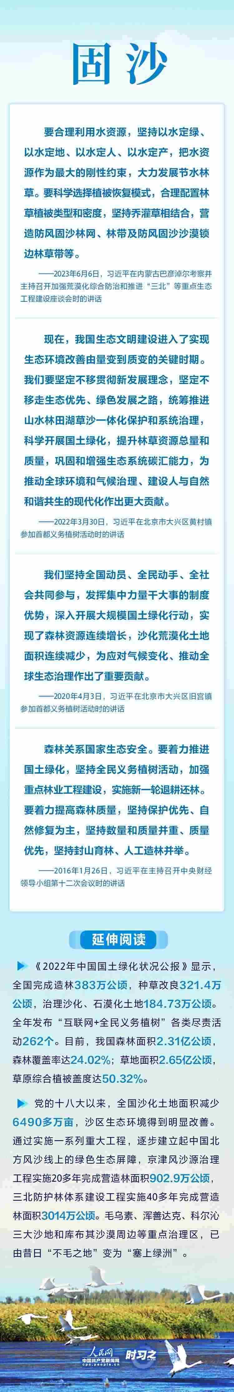 2023年6月5日至6日,中共中央總書記、國(guó)家主席、中央軍委主席習(xí)近平在內(nèi)蒙古自治區(qū)巴彥淖爾市考察,主持召開加強(qiáng)荒漠化綜合防治和推進(jìn)“三北”等重點(diǎn)生態(tài)工程建設(shè)座談會(huì)并發(fā)表重要講話。