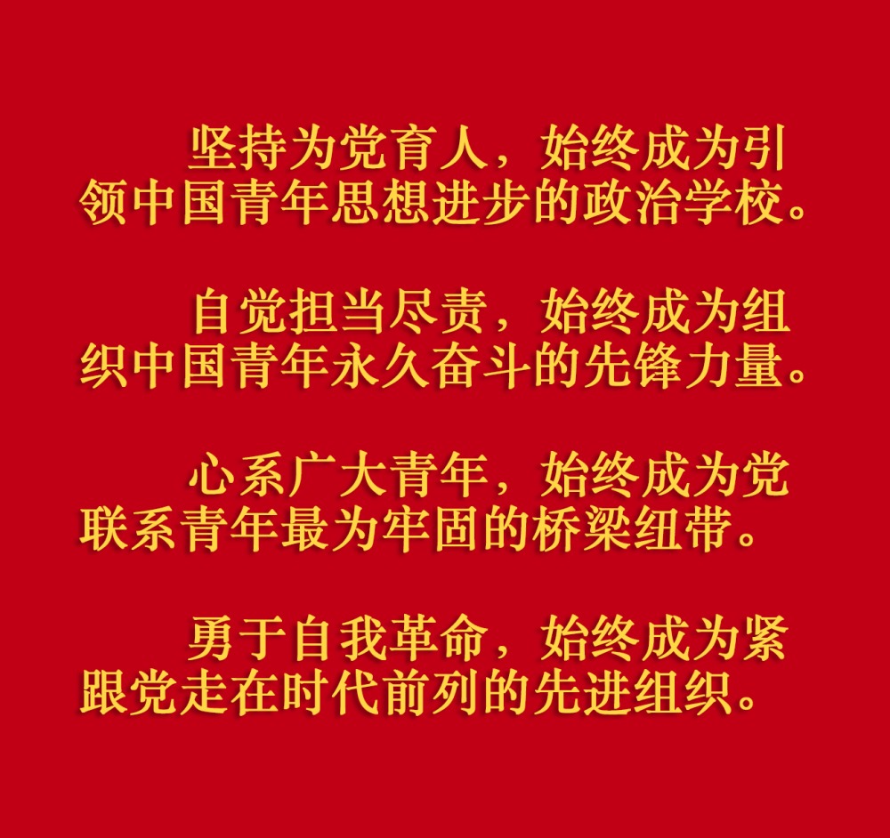 在慶祝中國共產(chǎn)主義青年團成立100周年大會上,習(xí)近平總書記從黨和國家事業(yè)發(fā)展全局出發(fā),給共青團明確提出了4點希望,飽含深情、催人奮進。