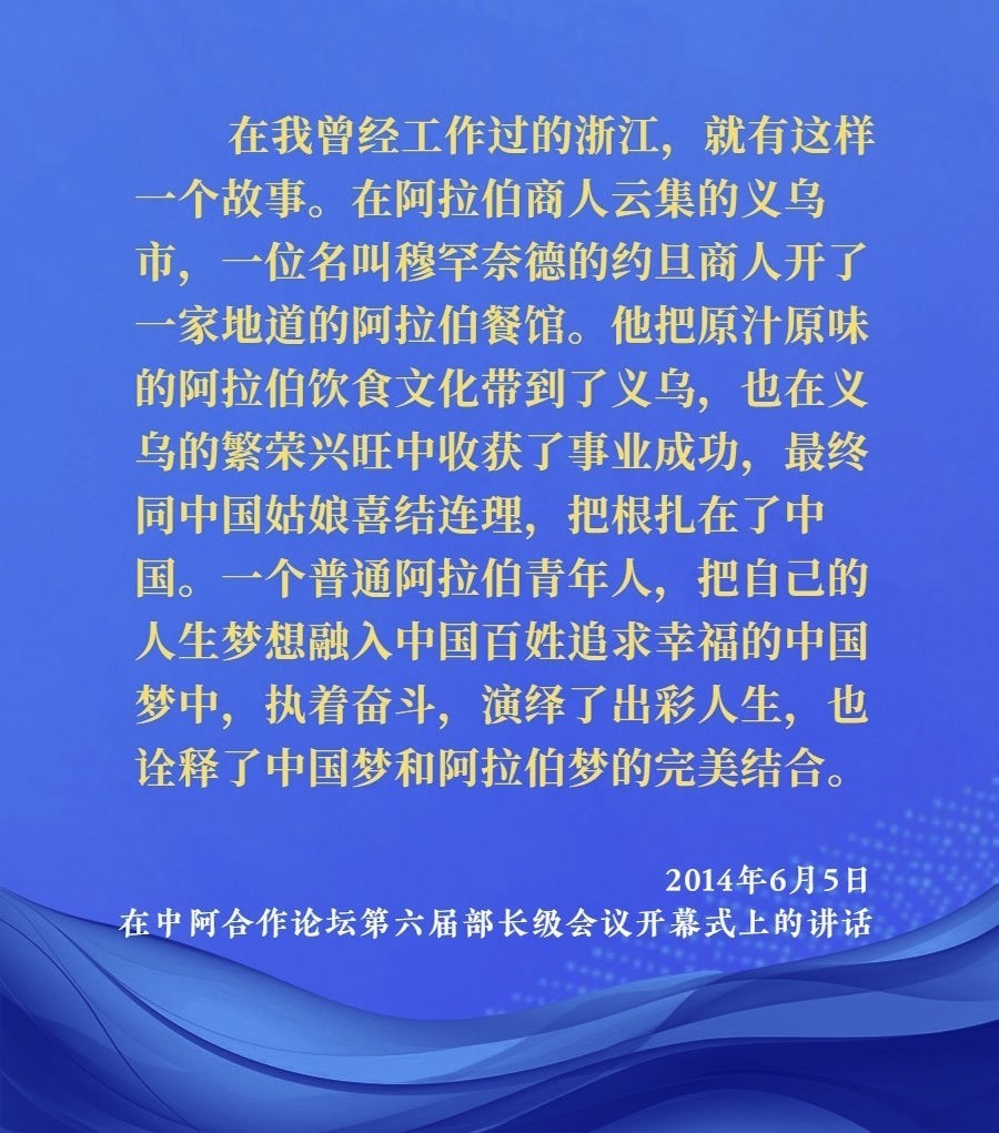 2014年6月5日,中阿合作論壇第六屆部長(zhǎng)級(jí)會(huì)議在北京人民大會(huì)堂開(kāi)幕。習(xí)近平出席開(kāi)幕式并發(fā)表題為《弘揚(yáng)絲路精神,深化中阿合作》的講話。