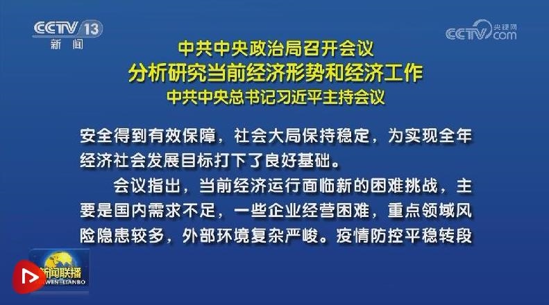 7月24日,中共中央政治局召開會議,分析研究當前經(jīng)濟形勢,部署下半年經(jīng)濟工作。習近平總書記主持會議。