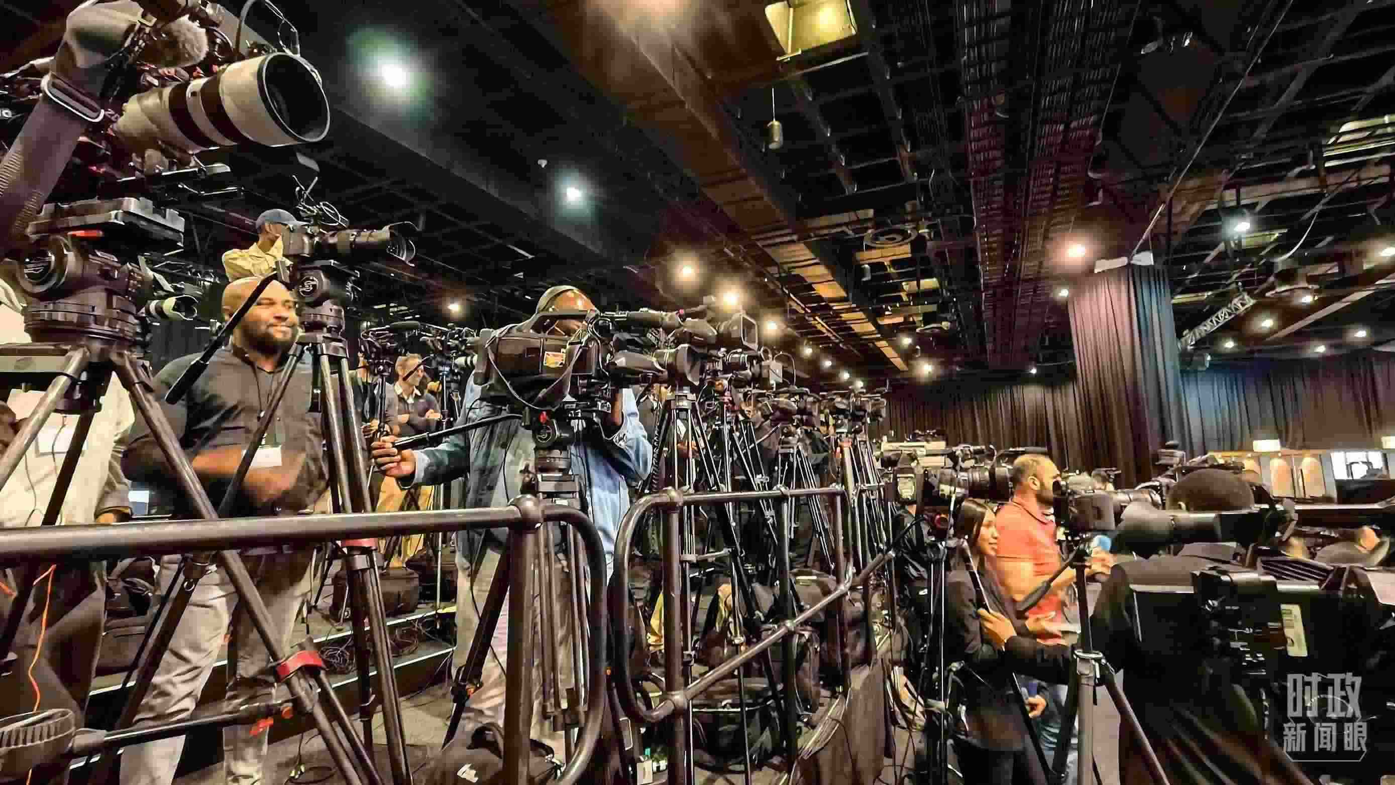 △特別記者會(huì)現(xiàn)場(chǎng)等候的各國(guó)記者。(總臺(tái)央視記者韓銳拍攝)