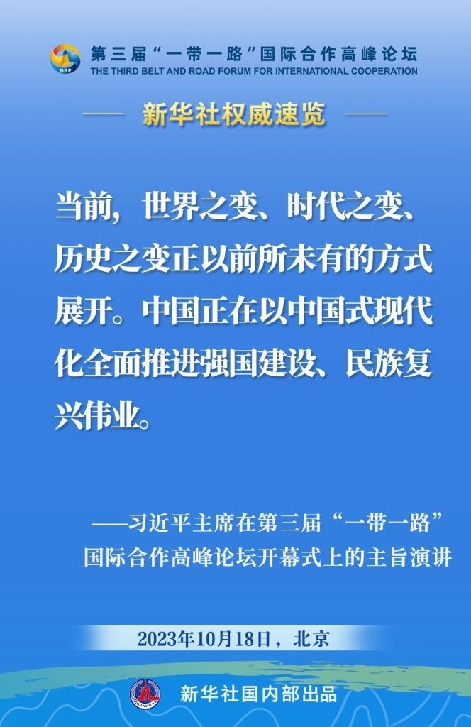 10月18日,國家主席習(xí)近平在第三屆“一帶一路”國際合作高峰論壇開幕式上發(fā)表主旨演講。一起來看金句。