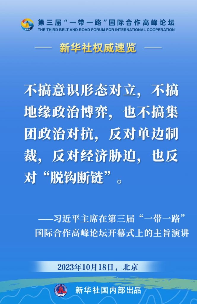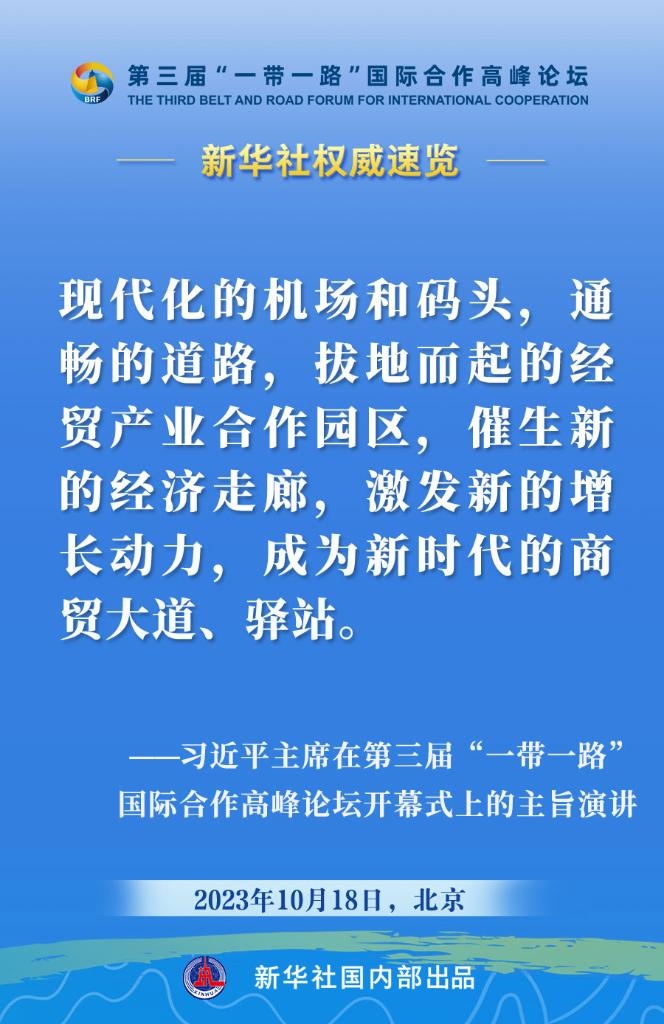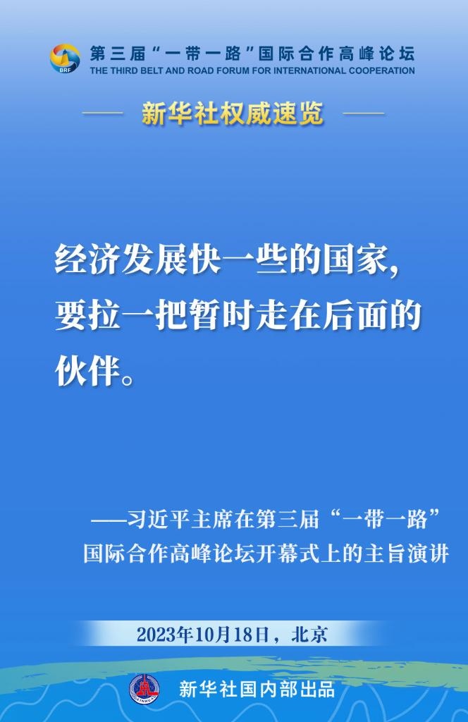 10月18日,國家主席習(xí)近平在第三屆“一帶一路”國際合作高峰論壇開幕式上發(fā)表主旨演講。一起來看金句?! ?/p>
