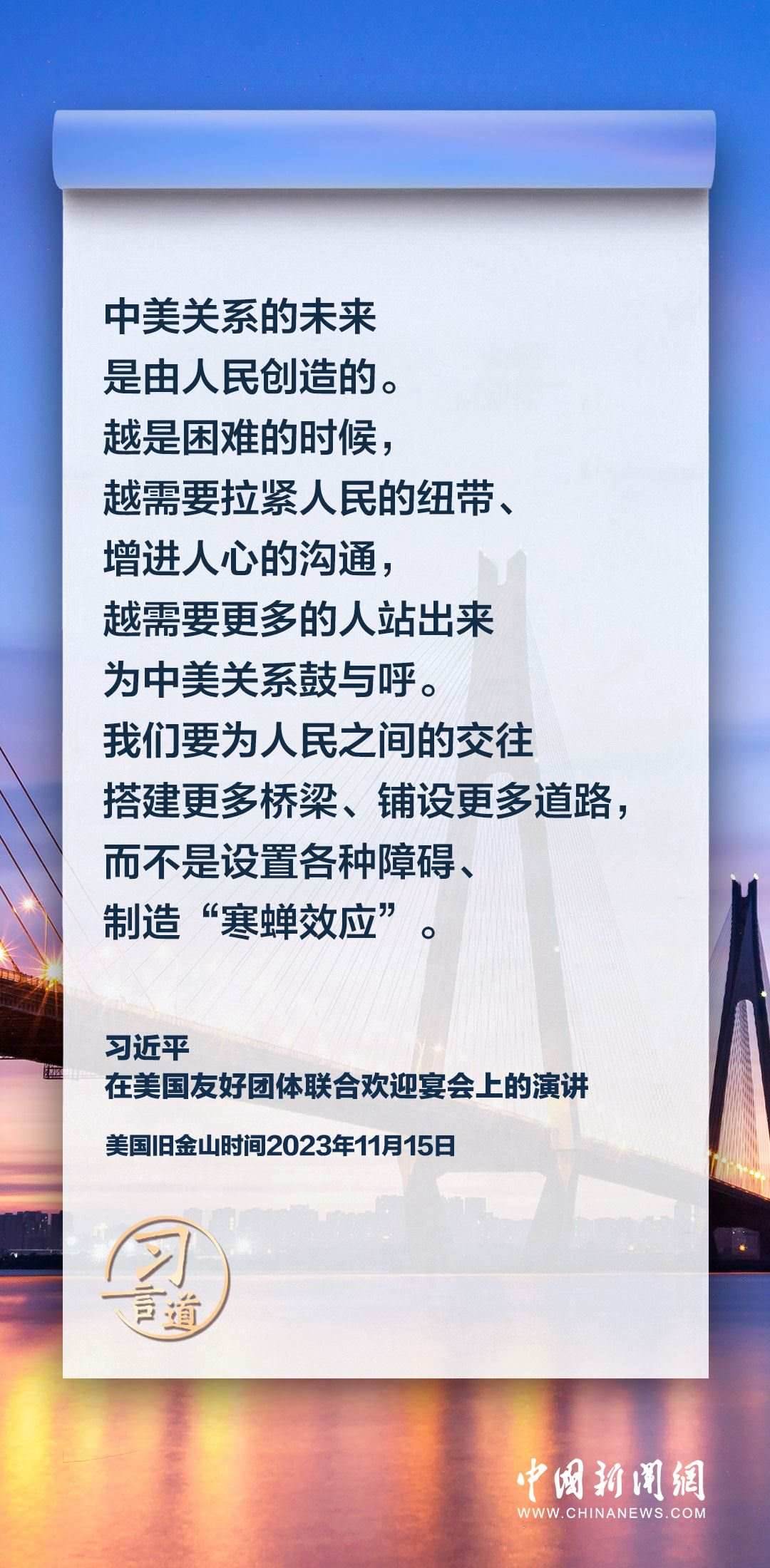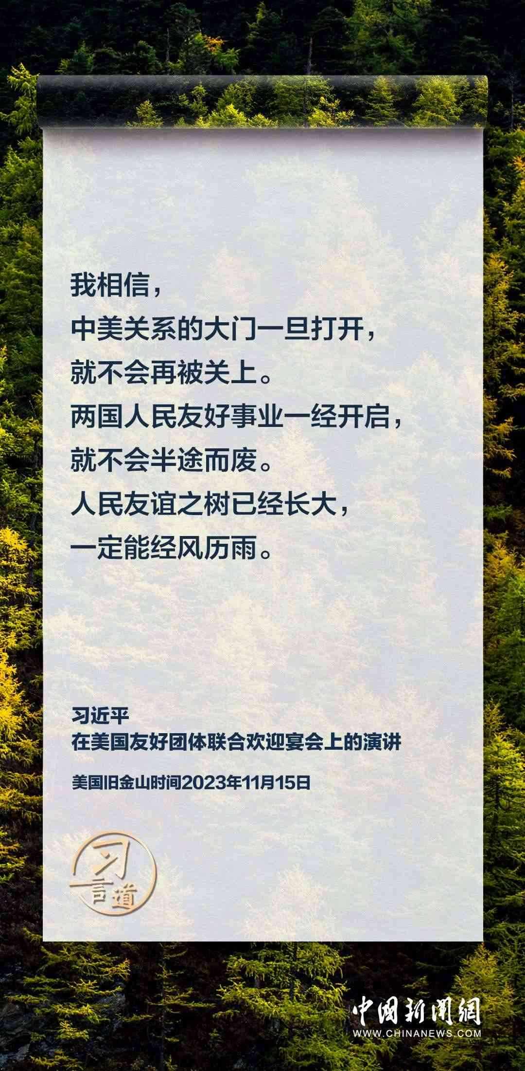 當(dāng)?shù)貢r間11月15日,中國國家主席習(xí)近平在美國舊金山出席美國友好團(tuán)體聯(lián)合歡迎宴會并發(fā)表演講。習(xí)近平在演講中從“我”和“我們”說起,提出中國主張、表明中國立場、展現(xiàn)大國擔(dān)當(dāng),話語擲地有聲。