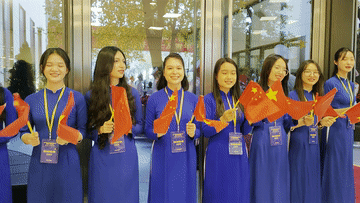 習(xí)近平總書記和夫人彭麗媛抵達(dá)國家會議中心時,受到越方青年代表熱烈歡迎。