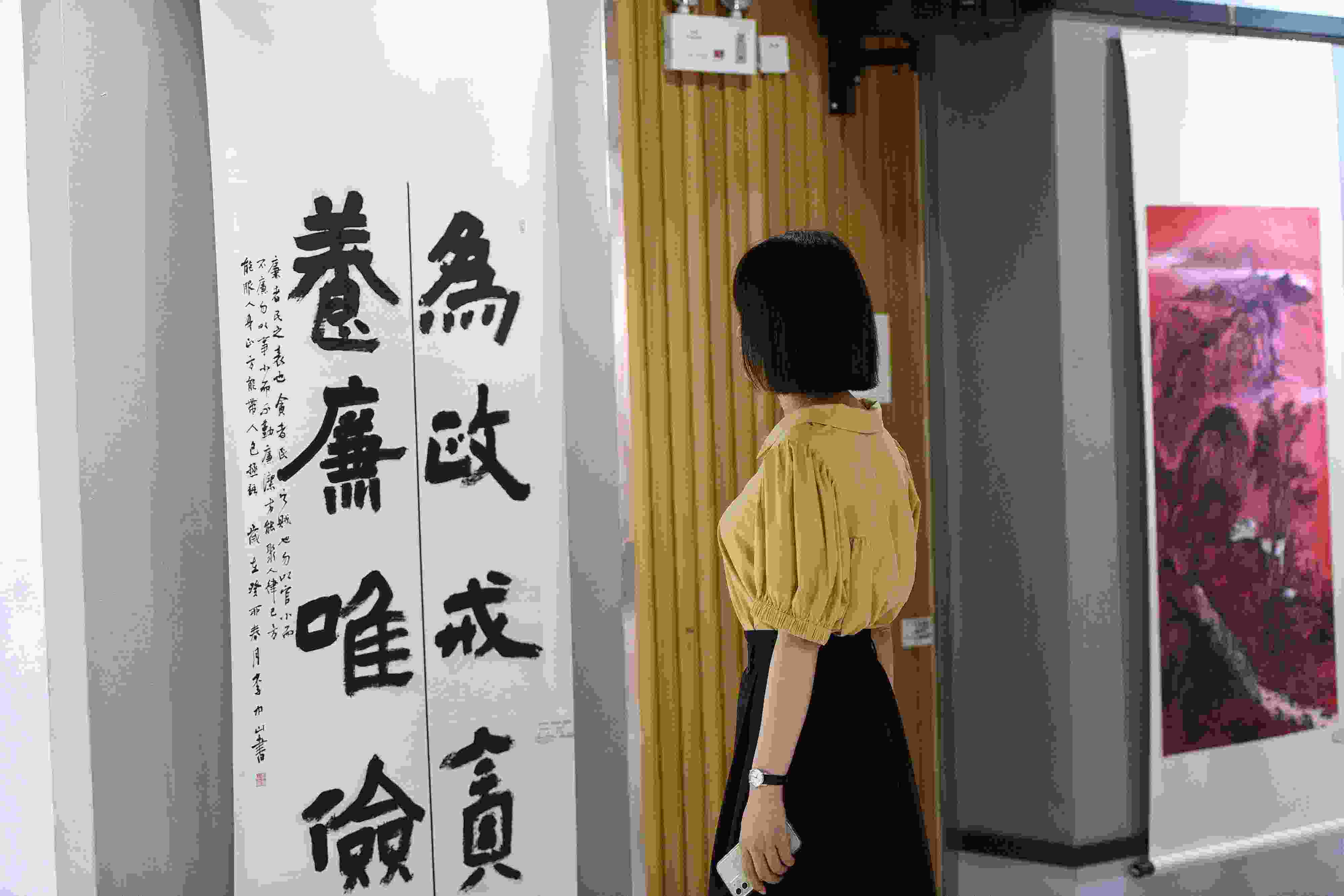 △ 2023年8月10日,合肥,30多家單位組織800余名黨員、干部參觀“清風(fēng)東來(lái)·廉動(dòng)瑤?!绷疂嵨幕瘯?shū)畫(huà)展。