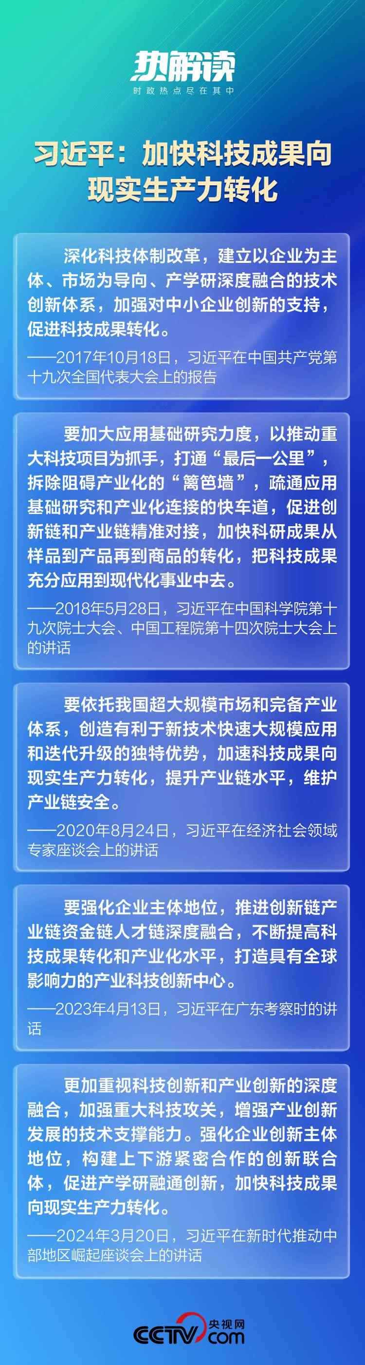 聽取湖南省委和省政府的工作匯報(bào),總書記再提新質(zhì)生產(chǎn)力,同樣提到科技成果轉(zhuǎn)化問題:“促進(jìn)創(chuàng)新鏈產(chǎn)業(yè)鏈資金鏈人才鏈深度融合,推動(dòng)科技成果加快轉(zhuǎn)化為現(xiàn)實(shí)生產(chǎn)力?!?/p>