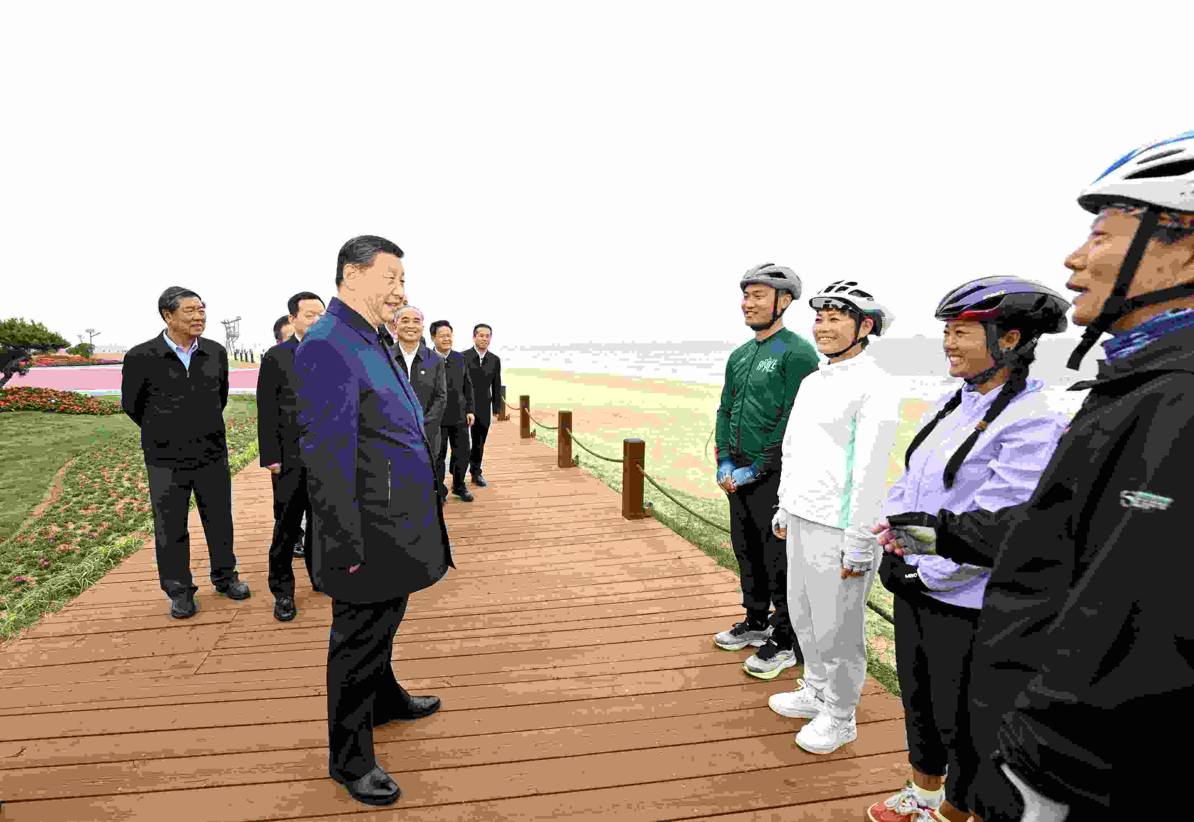 22日下午,習(xí)近平總書記來到山東日照市陽光海岸綠道,實地察看修復(fù)治理后的海岸線生態(tài)環(huán)境,并同正在海邊休閑鍛煉的市民游客親切交流。習(xí)近平強調(diào),老百姓的幸福生活是干出來的。我們要靠實干奮斗,實現(xiàn)中華民族偉大復(fù)興,使人民群眾生活越來越好。(杜尚澤)