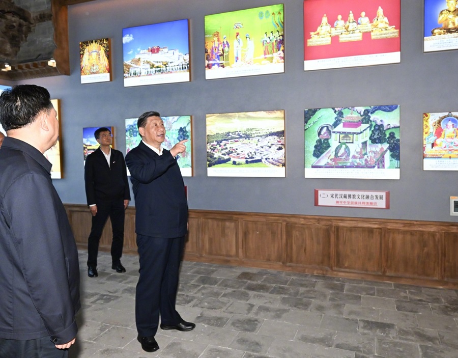 ??18日下午,習(xí)近平總書記在青海省考察調(diào)研。他先后來到西寧市的果洛西寧民族中學(xué)和宏覺寺,了解當?shù)厣钊胪七M教育工作東西部協(xié)作和對口支援、加強鑄牢中華民族共同體意識教育和藏傳佛教界弘揚愛國愛教優(yōu)良傳統(tǒng)、促進民族團結(jié)進步等情況。