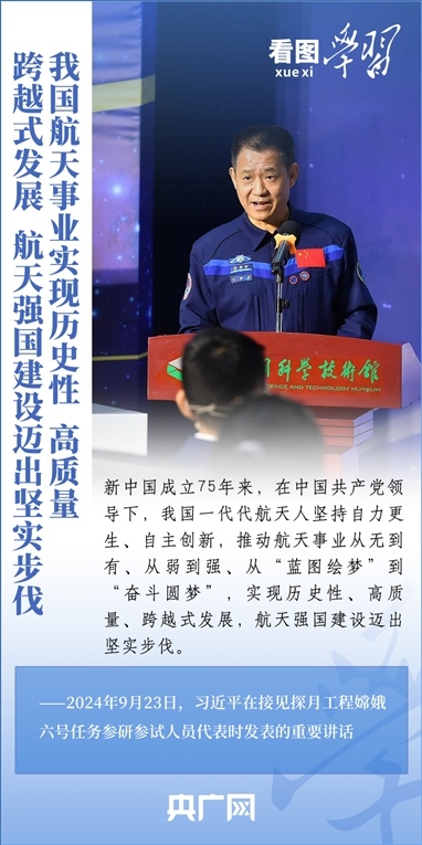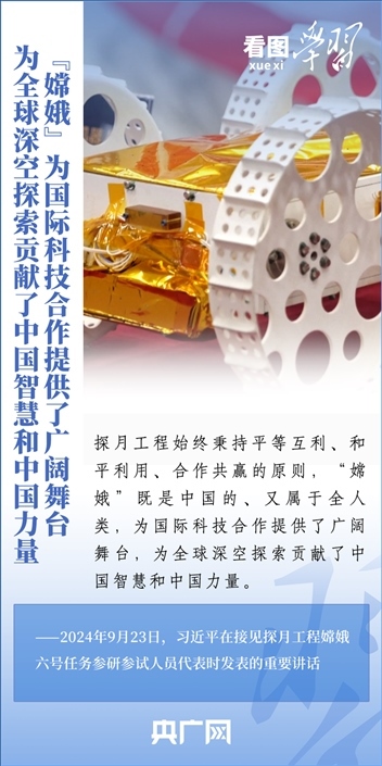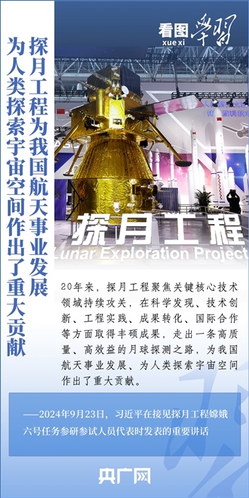 中國探月工程成果凝結(jié)著我國幾代航天人的智慧和心血。9月23日,習(xí)近平總書記接見探月工程嫦娥六號(hào)任務(wù)參研參試人員代表并發(fā)表重要講話??倳浉叨瓤隙ㄦ隙鹆?hào)任務(wù)成功的重要意義,以及探月工程為我國航天事業(yè)發(fā)展、為人類探索宇宙空間作出的重大貢獻(xiàn),勉勵(lì)航天戰(zhàn)線工作者再接再厲、乘勢而上,為建設(shè)航天強(qiáng)國再立新功。一起來學(xué)習(xí)!