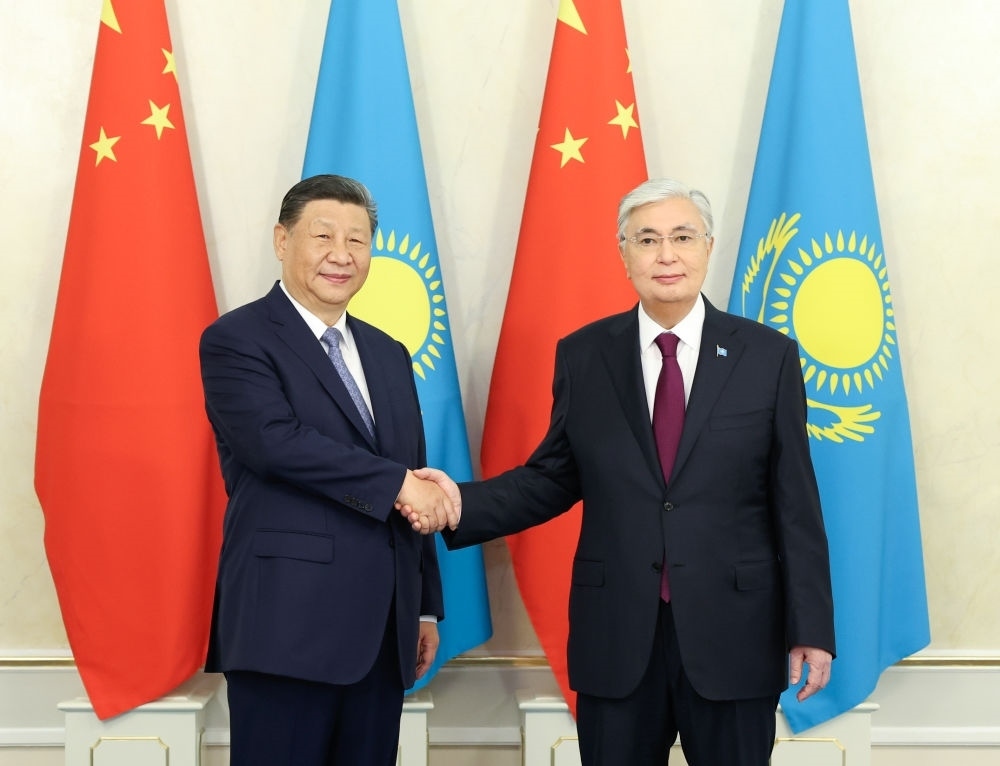 當(dāng)?shù)貢r(shí)間7月3日上午,國(guó)家主席習(xí)近平在阿斯塔納總統(tǒng)府同哈薩克斯坦總統(tǒng)托卡耶夫舉行會(huì)談。