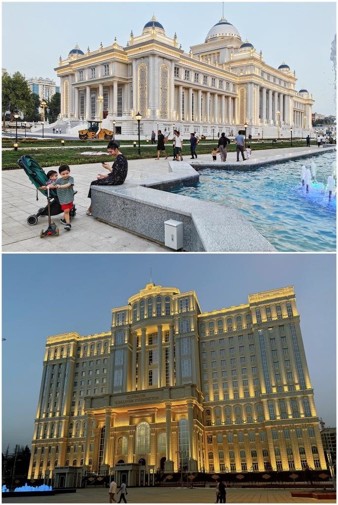 塔議會大樓、政府大樓坐落于杜尚別著名的魯達基大道,相隔數(shù)百米。議會大樓同總統(tǒng)府相望,政府大樓則俯瞰杜尚別另一條交通干道——索莫尼大道。兩座大樓融合歐亞古典柱廊結(jié)構、塔吉克民族特色雕刻、伊斯蘭文化風格的設計,外觀大氣、典雅莊重,同魯達基大道兩側(cè)的古樹、鮮花、噴泉相映成景。