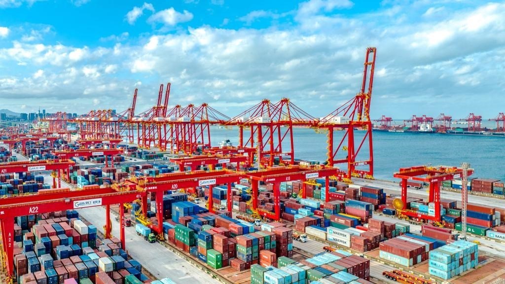 這是山東港口日照港的集裝箱碼頭(無人機照片)。