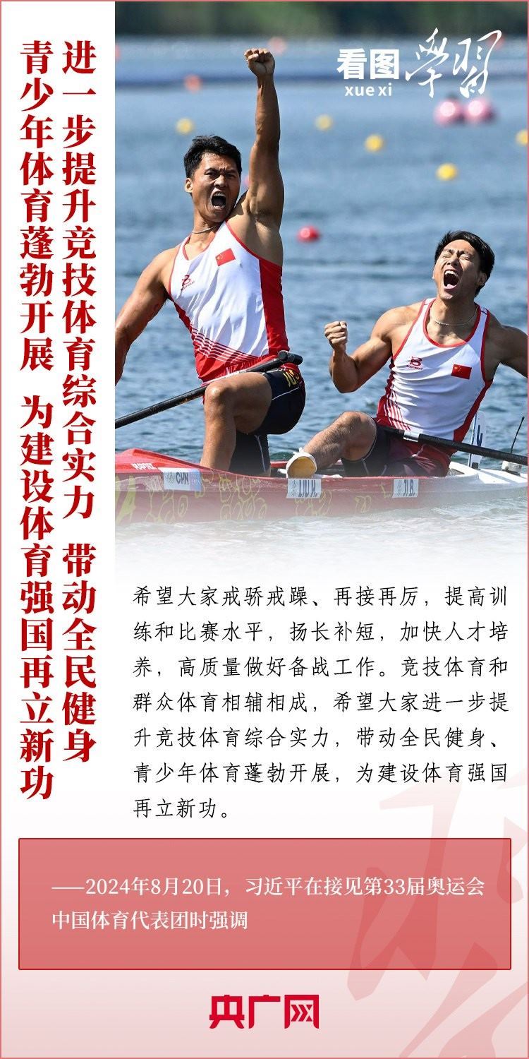 “祖國和人民為你們驕傲,為你們點(diǎn)贊?!?月20日,習(xí)近平總書記在人民大會堂接見第33屆奧運(yùn)會中國體育代表團(tuán)并發(fā)表重要講話。總書記高度肯定中國體育代表團(tuán)取得的優(yōu)異成績,贊揚(yáng)他們充分彰顯了新時代中國力量、生動詮釋了新時代中國精神、充分展現(xiàn)了新時代中國形象,勉勵大家戒驕戒躁、再接再厲,為建設(shè)體育強(qiáng)國再立新功。一起來學(xué)習(xí)!