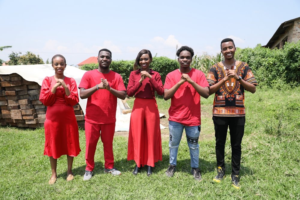 ??2024年2月7日,在盧旺達(dá)南方省卡莫尼地區(qū),盧旺達(dá)青年團(tuán)隊成員向鏡頭前觀眾送上新春祝福。新華社發(fā)(黃萬晴 攝)