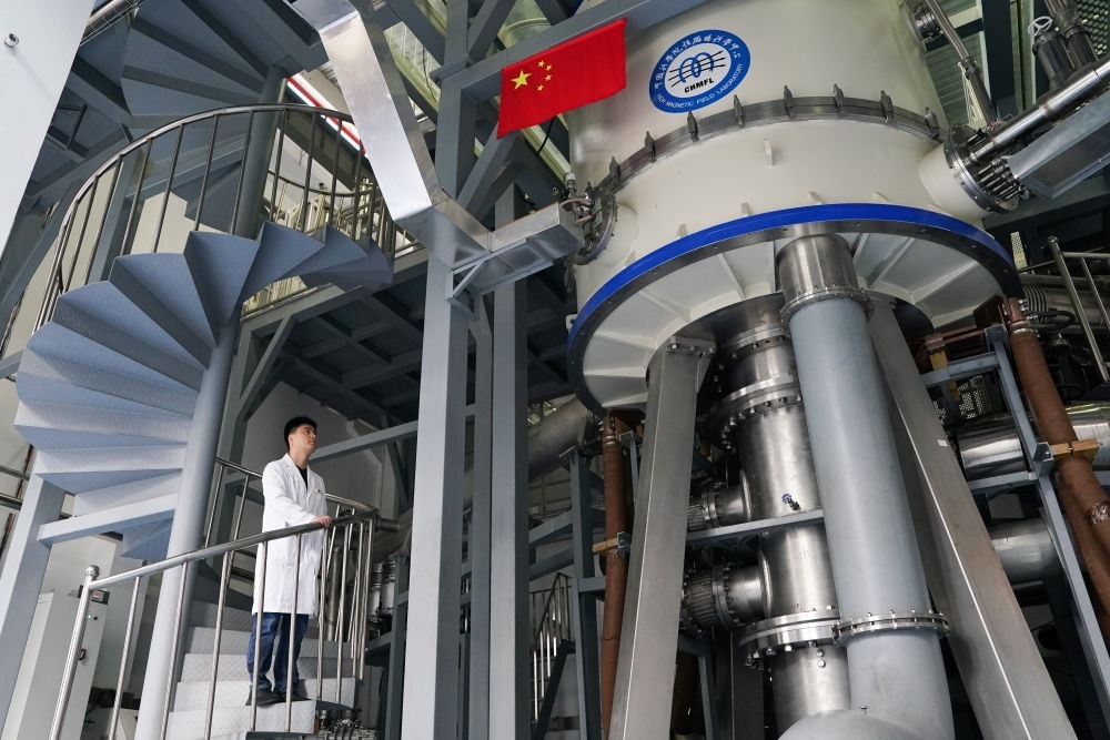 這是在中國(guó)科學(xué)院合肥物質(zhì)科學(xué)研究院強(qiáng)磁場(chǎng)科學(xué)中心拍攝的國(guó)家重大科技基礎(chǔ)設(shè)施“穩(wěn)態(tài)強(qiáng)磁場(chǎng)實(shí)驗(yàn)裝置”混合磁體(2022年10月17日攝)。