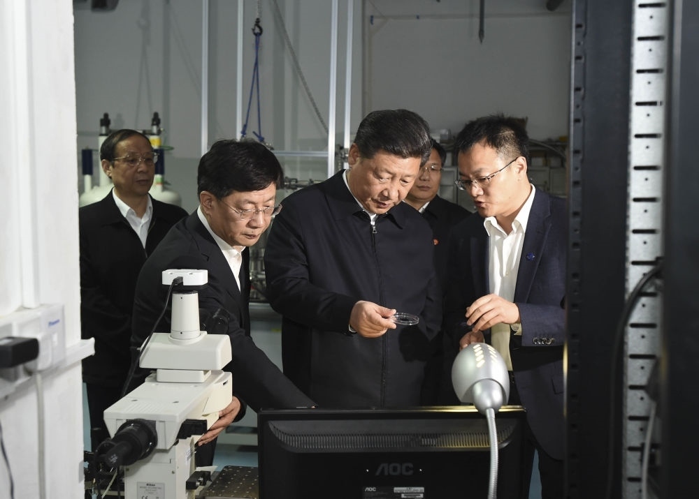 2016年4月26日,習(xí)近平在中國(guó)科技大學(xué)近代物理系自旋磁共振實(shí)驗(yàn)室了解科研情況。