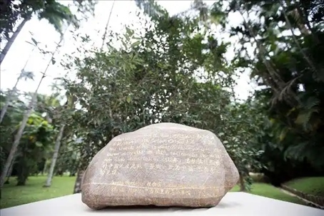 △巴西里約熱內(nèi)盧植物園,來(lái)自中國(guó)福建的華安石紀(jì)念牌記載:“1812年,首批抵達(dá)巴西的中國(guó)人在此栽下茶樹(shù)”。