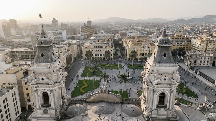 這是10月13日拍攝的秘魯首都利馬武器廣場(無人機(jī)照片)。新華社記者 李木子 攝
