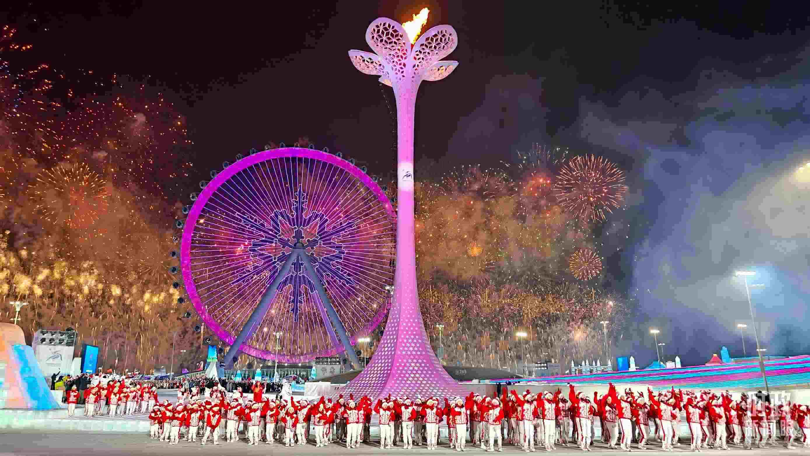 △哈爾濱亞冬會主火炬點(diǎn)燃。(總臺記者任秋宇拍攝)