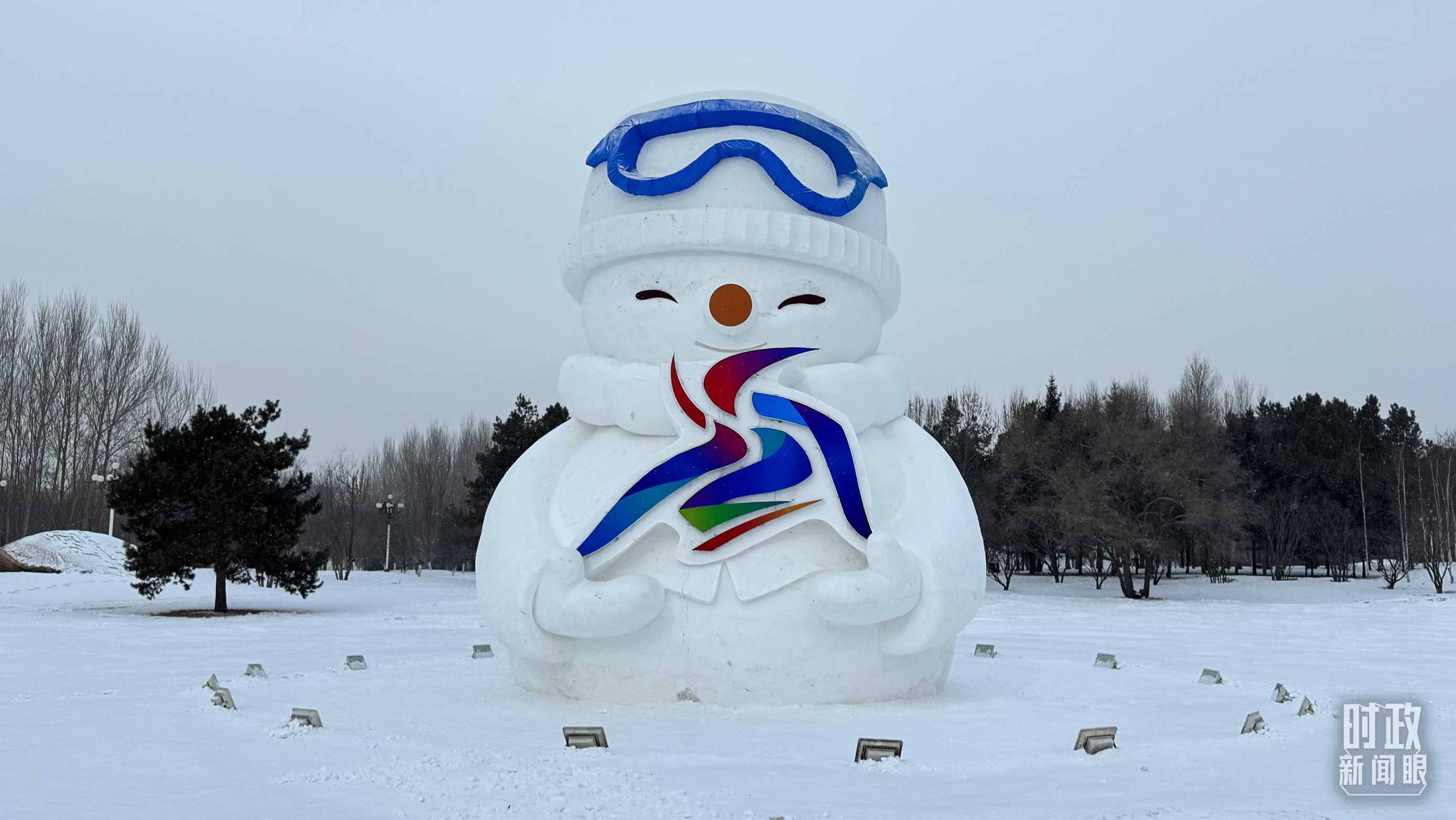 △裝飾有亞冬會會徽元素的雪人。(總臺央視記者蔣碩拍攝)