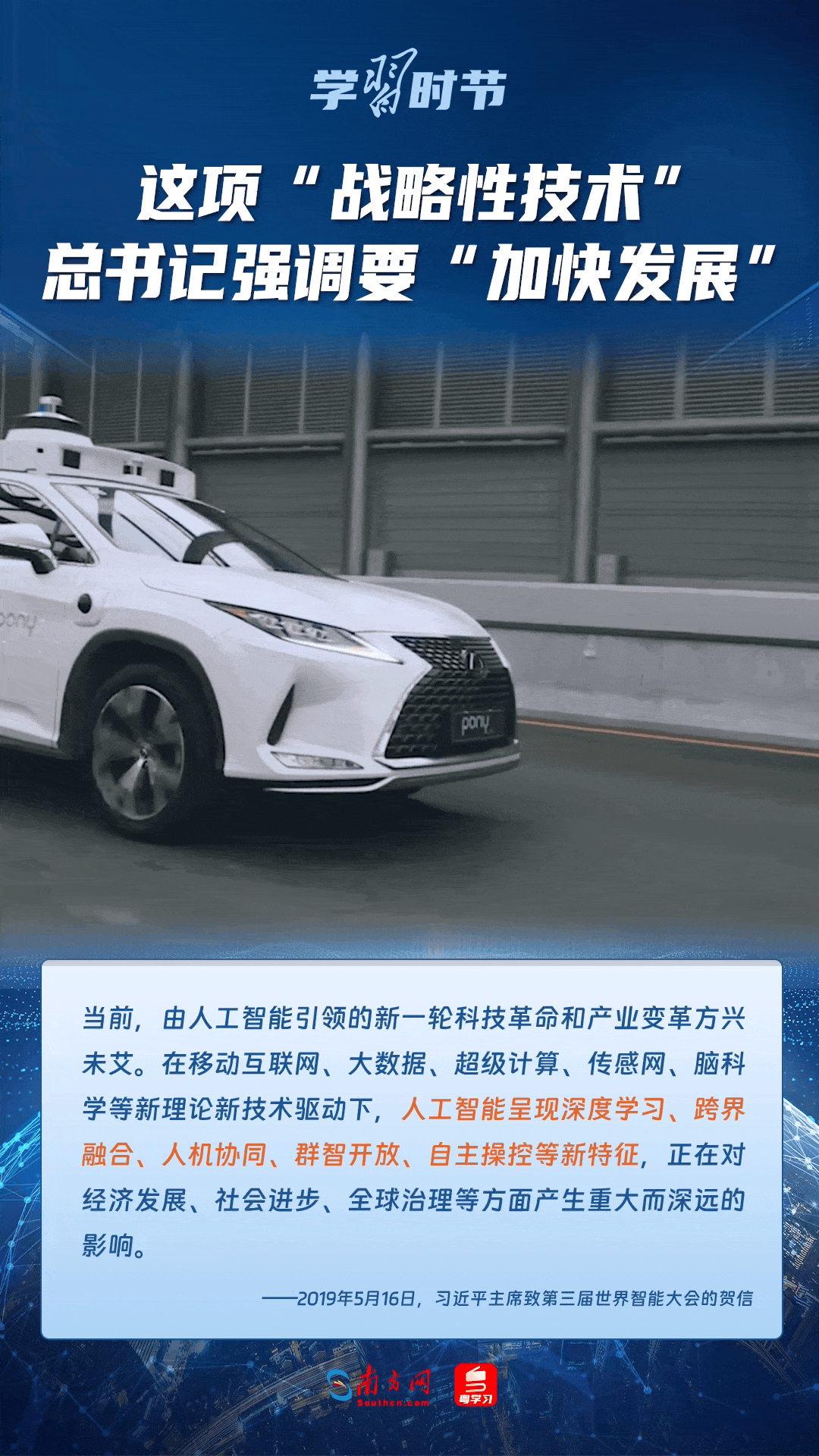 人工智能是引領(lǐng)科技革命和產(chǎn)業(yè)變革的戰(zhàn)略性技術(shù)。黨的十八大以來,習(xí)近平總書記把創(chuàng)新擺在國家發(fā)展全局的核心位置,高度重視人工智能發(fā)展,多次談及這項“戰(zhàn)略性技術(shù)”,強(qiáng)調(diào)要“加快發(fā)展”,為人工智能賦能千行百業(yè)指明方向。讓我們一起來學(xué)習(xí)總書記關(guān)于人工智能的重要論述!