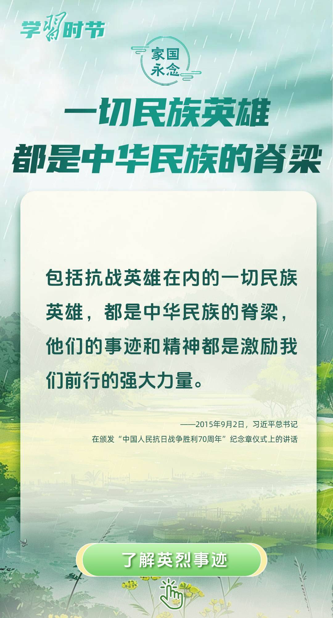 黨的十八大以來,習(xí)近平總書記曾在多個場合講述英烈故事、致敬英烈精神、緬懷英烈忠魂,表達(dá)對英烈的崇敬之情。清明節(jié)到來之際,讓我們重溫習(xí)近平總書記的相關(guān)重要講話,崇尚英雄、緬懷英烈,厚植家國情懷,凝聚前行力量。