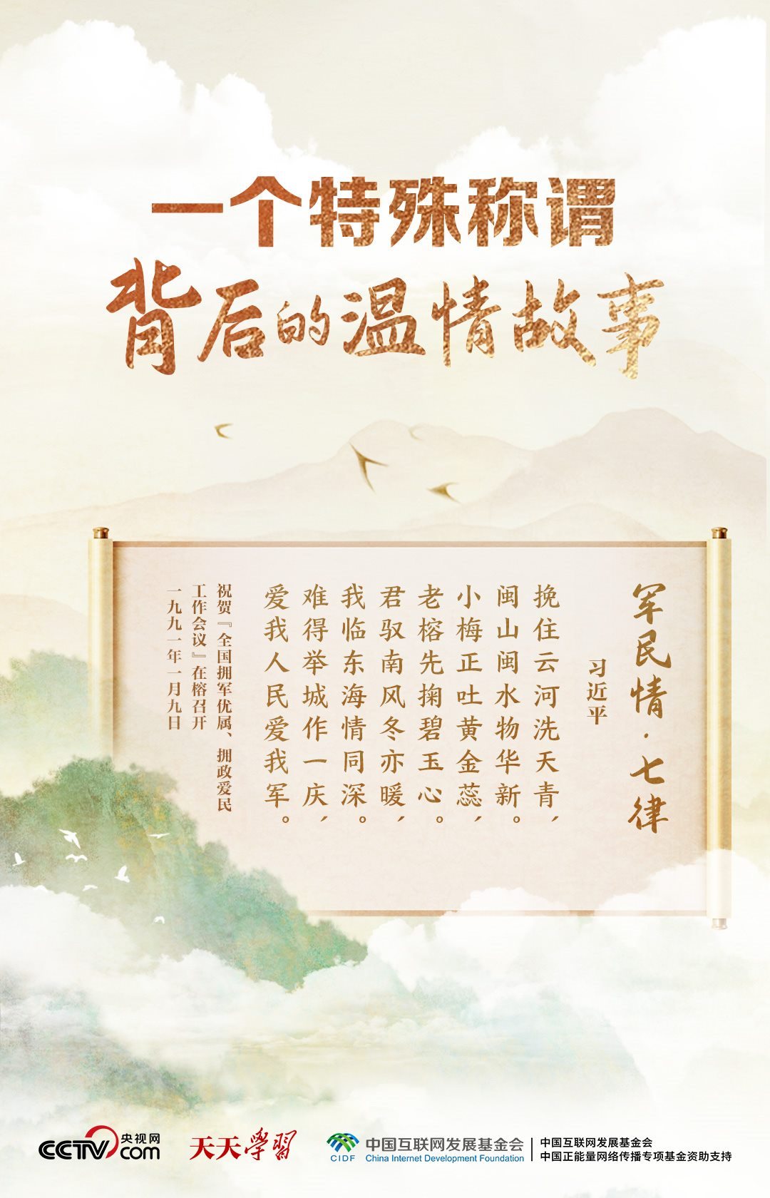 當(dāng)年在福州工作時,習(xí)近平曾賦詩《軍民情·七律》,表達(dá)了他對軍隊的深情:“君馭南風(fēng)冬亦暖,我臨東海情同深。難得舉城作一慶,愛我人民愛我軍。”
