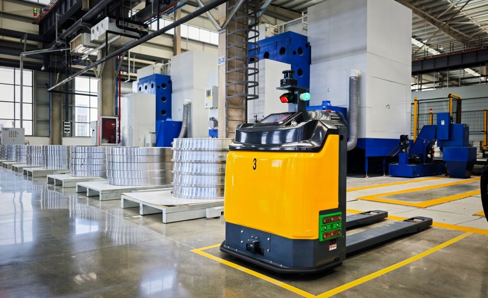 2025年5月19日在洛軸智能工廠拍攝的自動(dòng)導(dǎo)向運(yùn)輸車(AGV)。