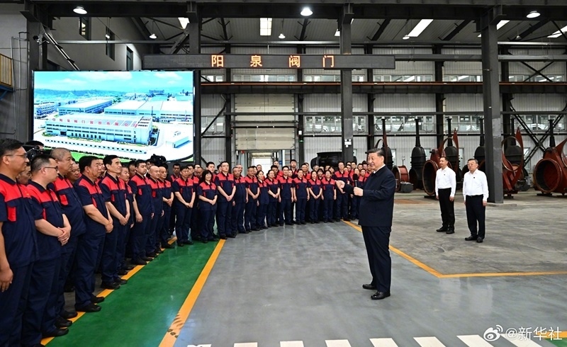 7日下午,習近平總書記在陽泉閥門股份有限公司考察。他察看企業(yè)生產(chǎn)車間和產(chǎn)品展示,同現(xiàn)場工人親切交談,了解山西加快產(chǎn)業(yè)轉型升級、推動高質量發(fā)展等情況。(文字記者:張曉松、朱基釵;攝影記者:謝環(huán)馳、燕雁、翟健嵐)