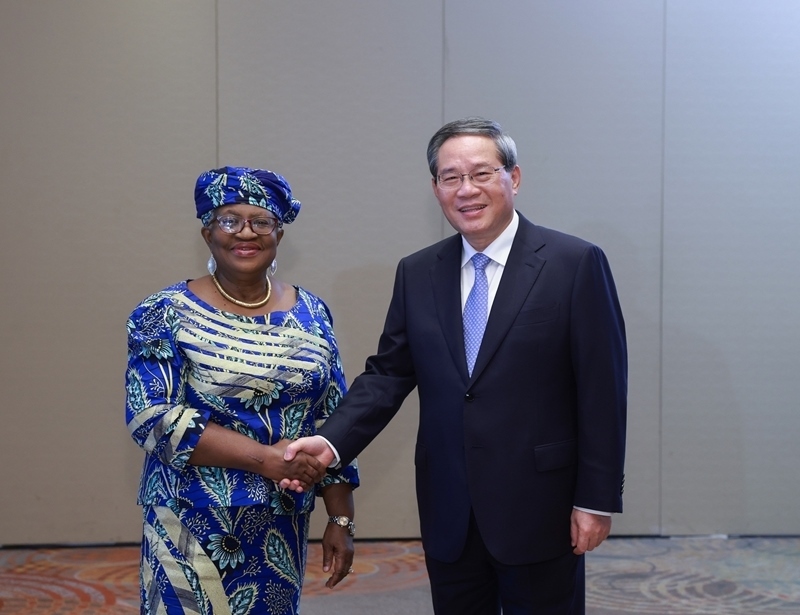 當(dāng)?shù)貢r間7月7日,國務(wù)院總理李強在里約熱內(nèi)盧會見世界貿(mào)易組織總干事伊維拉。